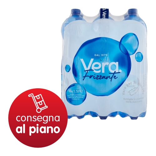 Acqua frizzante Vera 1,5 litri in confezione da 6 bottoglie.