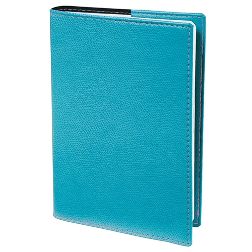 Copertina con grana stile pelletteria di colore turchese e cuciture a sellaio.