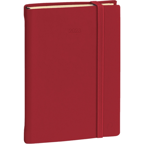 Rilegatura cucita ultra resistente, copertina similpelle al tatto, di colore rosso. Chiusura sicura con elastico verticale. Tasca portadocumenti a soffietto. Griglia 12 mesi gennaio-dicembre, stampa bicolore grigio/rosso.