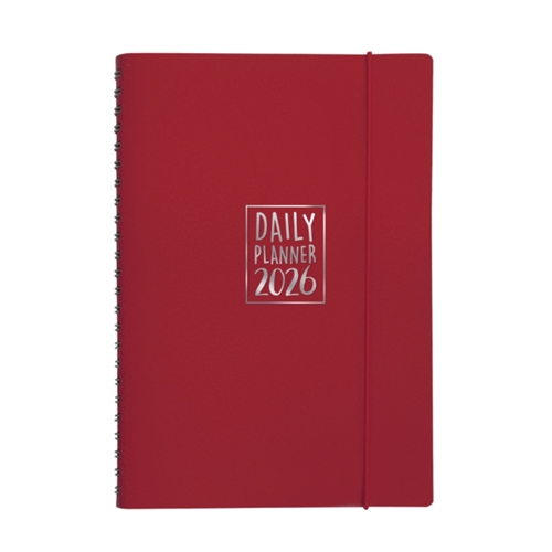 Agenda giornaliera spiralata 2026 - Biembi - cuoio rigenerato - 15x21cm - rosso magenta