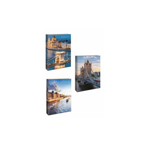 Album portafoto con tasca con memo. Contiene fino a 200 foto formato 13x19 cm con spazio dedicato per memo. Dimensione album 22x32 cm. Copertine assortite città, tre oggetti.