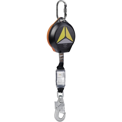 Anticaduta a richiamo automatico con cinghia in poliestere 25 mm. Taglia 6M. Carter di protezione in ABS. Tornichetto con indicatore di caduta. 1 moschettone AM016. Testato per uso orizzontale. Cinghie: Polistere. Carter : Plastica. Gancio : Acciaio. Molinello : Alluminio. Colore: Nero. Indicatore di caduta con facile verifica visiva. Leggero e compatto: 1,6 kg. Facile da trasportare e installare. Testato a 128 kg. Nessun problema legato al peso degli utensili trasportati o di altro.