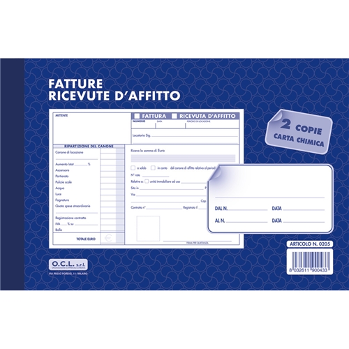 Blocco ricevute affitto O.C.L. 50x2 copie - 0205- conf. 10