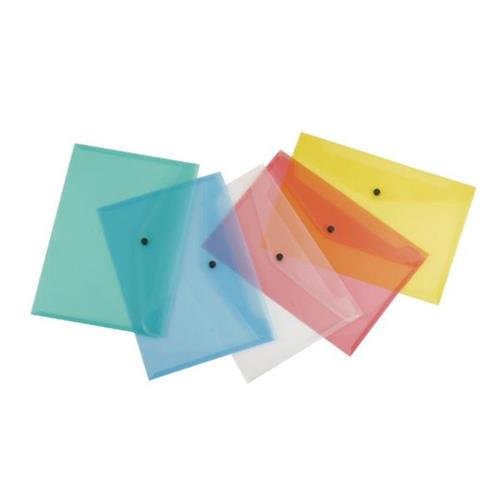 Buste in A4 in polipropilene con bottone di chiusura. ideali per presentazioni o archiviazione.