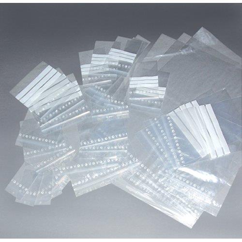 Queste buste con zip misurano 20x30 cm e sono trasparenti con tre bande bianche scrivibili sul lato frontale. Dotate di cerniera richiudibile a pressione. Lo spessore di 50 mycron garantisce alla busta una buona resistenza.