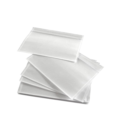 Buste neutre adesive portadocumenti C5. Misura esterna: 235x175mm. Misura interna 225x160mm. Larghezza saldatura: 5mm ogni lato (+/-2mm). Materiale: Transparente PP Polipropilene con adesivo Hot Melt. Spessore: Strato superiore 45micron. Strato inferiore 30micron. Collante: 25gsm. Rilascio carta: 45gsm adesivo kraft bianco con rivestimento in silicone. Confezione da 1000 pezzi.