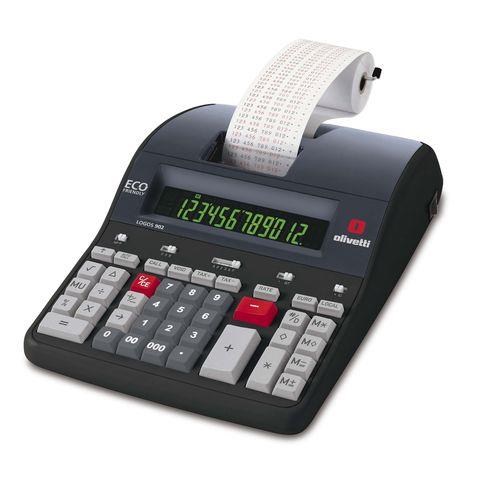 La calcolatrice scrivente Logos 902 Olivetti a 12 cifre è dotata di display LCD retroilluminato che visualizza i calcoli in 2 colori estremamente brillanti e visibili in qualsiasi condizione di luce.. È fornita di stampante a impatto a 2 colori (rosso/nero) ed ha una velocità di stampa di 3.5 linee/secondo. Appartiene alla linea delle calcolatrici professionali Olivetti ECO FRIENDLY, perciò non contiene sostanza nocive alla salute ed è composta ad plastica riciclata e riciclabile più volte.