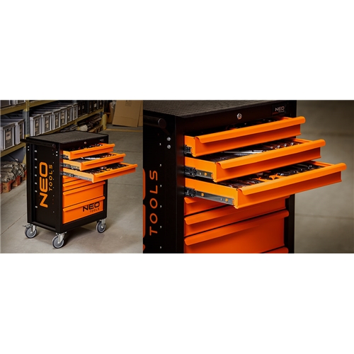Carrello da officina Neo Tools - 7 cassetti - dimensioni 1030x680x460 mm - allestito con 129 utensili