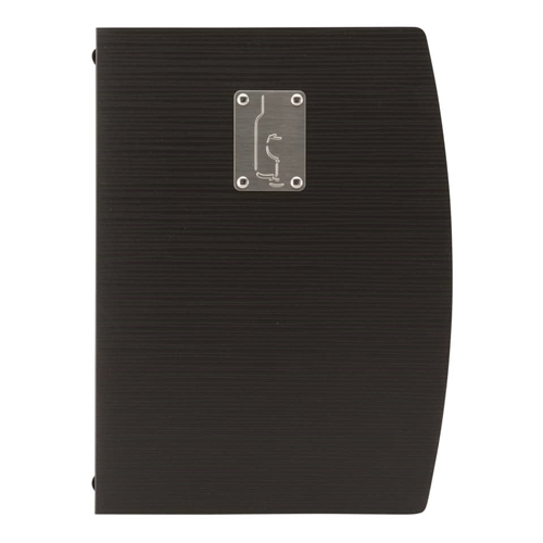 Carta dei vini della serie "Rio" di Securit in formato A4. E' realizzata in polipropilene di alta qualità con targhetta in acciaio inossidabile e inserto doppio trasparente (4 facciate). Facile da pulire, il prodotto è realizzato in materiale resistente adatto a durare nel tempo. È possibile aggiungere ulteriori pagine al menù utilizzando gli inserti Securit compatibili disponibili a catalogo al codice IC2987.