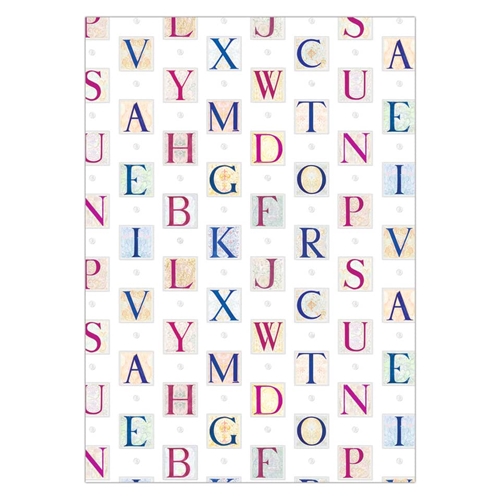 Carta regalo pregiata disponibile a fogli estesi nel formato 70 x 100 cm. Confezione da 5 fogli. Fantasia Lettere.