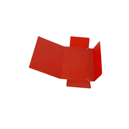 Cartelle portadocumenti in cartoncino plastificato bi-lucido a 3 lembi. Chiusura con elastico tondo, formato 17 x 25 cm, colore rosso.