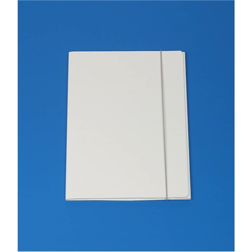 Cartelle in cartone plastificato dai colori brillanti con alette e chiusura ad elastico. Spessore 0.8 mm, formato 25 x 34 cm. Colore bianco.
