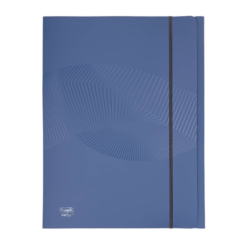 Cartelletta a tre lembi Favorit realizzata in polipropilene opaco riciclato post consumo. Elegante trama geometrica brillante sulla superficie del prodotto. Certificazione Blue Angel a garanzia della salvaguardia dell’ambiente. Chiusura con elastico piatto di colore grigio. Formato interno 24 × 33 cm. Dorso 0-1 cm.