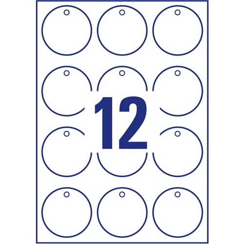 Cartellini in cartoncino rotondo da 220 g con bordi lisci. Formato: Ø60 mm. Utilizzabile su stampante laser e stampabili su due lati. Certificati FSC®. Include il cordoncino. Confezione da 10 fogli ognuno da 12 cartellini, per un totale di 120 cartellini.