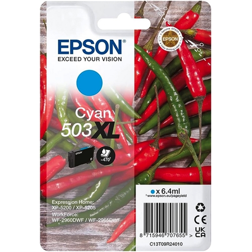 Cartuccia Epson 503XL Peperoncino. Colore: ciano. Capacita': 6,4 ml. Compatibile con: Epson WorkForce WF-2960.