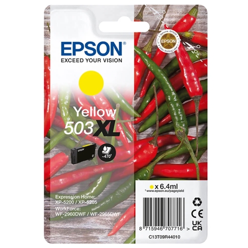 Cartuccia Epson 503XL Peperoncino. Colore: giallo. Capacita': 6,4 ml. Compatibile con: Epson WorkForce WF-2960.