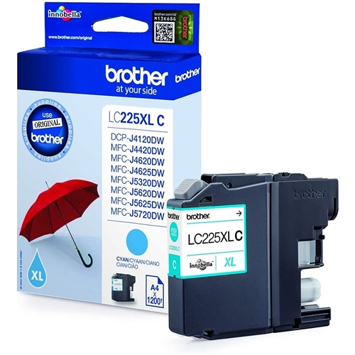 Cartuccia originale LC-225 Brother, di colore ciano e dalla durata di 1200 pagine.