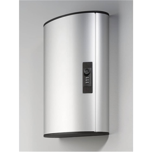 Cassetta portachiavi in alluminio capacità 72 chiavi, dotata di serratura a combinazione a tre cifre, facile da impostare. Il design moderno e sobrio è studiato per renderla adatta a qualsiasi ambiente, elegante anche esposta a vista. I particolari pannelli interni a cremagliera permettono alle barre portachiavi di essere agganciate all'altezza desiderata, assicurando un'alta versatilità di gestione. L'esclusivo portachiavi a scatto mostra solamente l'etichetta sempre in posizione frontale e nasconde completamente la chiave stessa, questo assicura l'identificazione immediata delle chiavi e una visione sempre ordinata del contenuto della cassetta. Lo sportello si apre a più di 90° per facilitarne l'accesso.