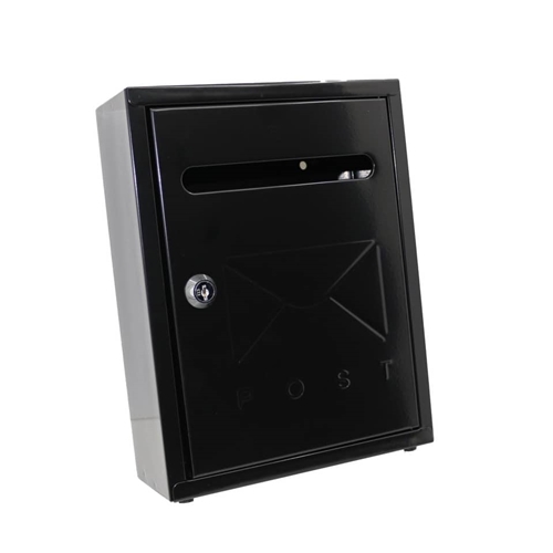 Cassetta postale in acciaio di colore nero. Inserimento posta da fessura frontale. Misure contenute per soluzione minimalista. Dimensioni: 200 x 75 x 260 mm.