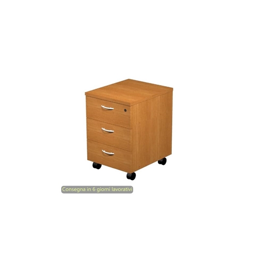 Cassettiera a 3 cassetti della serie Presto, una linea economica ma caratterizzata da soluzioni tecniche di livello superiore. Cassetti scorrevoli su guide metalliche con fermo a fine corsa, di cui il primo fornito anche di serratura. Con ruote pivotanti, smontate e senza freno..