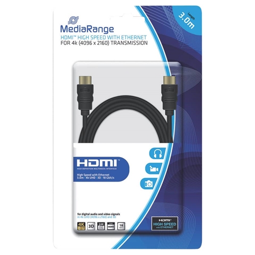 Cavo di collegamento HDMI ad alta velocità, contatti dorati. Sia a casa che in ufficio, MediaRange ha il cavo giusto. La nostra vasta gamma di cavi di alta qualità e prolunghe affidabili garantisce una trasmissione dei dati ottimale e senza problemi.