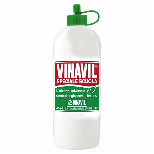 Vinavil ''Speciale Scuola'' in barattolo da 250 g. Nuova formula che risponde perfettamente alle esigenze di sicurezza, adesivo universale senza allergeni e dermatologicamente testato. Perticolarmente indicato per incollare : carta - cartone - stoffe - feltri - pelletterie ed articoli di cuoio - legno- sughero e relativi conglomerati e truciolati - laminati plastici vari rigidi e telati ecc...