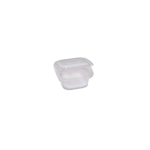 Contenitori quadrati Cuki Professional in polipropilene con coperchio incernierato, linea gastronomia a caldo. Dimensioni 120 mm x 120 mm x 55 mm. Confezione da 50 pezzi.