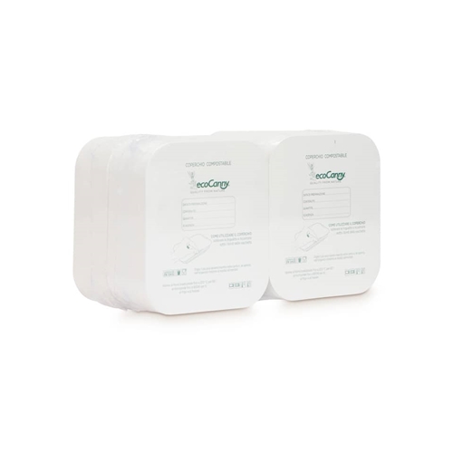 Coperchi per vaschette bio-compostabili ecoCanny, realizzati in cartoncino bianco.