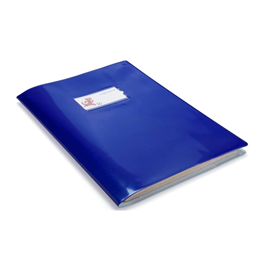 Copertina in PVC accoppiato laccato colorato (300 micron), con alette salva angoli e tasca portanome saldata. Formato 21 x 30 cm, colore blu. Confezione composta da 25 copertine.