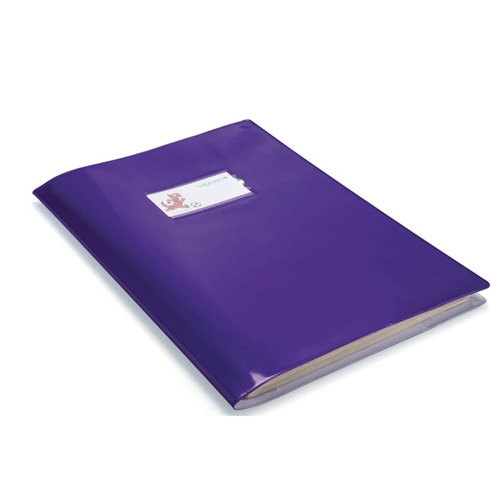 Copertina in PVC accoppiato laccato colorato (300 micron), con alette salva angoli e tasca portanome saldata. Formato 21 x 30 cm, colore viola. Confezione composta da 25 copertine.
