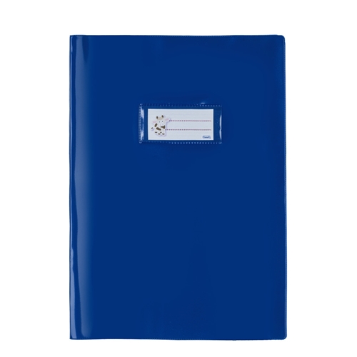Coprimaxi C25E Francese realizzati in PVC con spessore 250 μm con alette ripiegate da 18 cm, portanome e listelli blocca quaderno centrali. Finitura coprente laccata lucida. 100% riciclabili. Adatti per quaderno A4 - formato 21x29,7 cm. Colore blu.