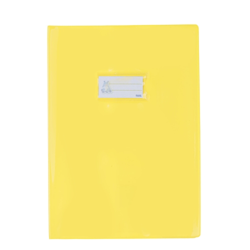 Coprimaxi C25E Francese realizzati in PVC con spessore 250 μm con alette ripiegate da 18 cm, portanome e listelli blocca quaderno centrali. Finitura coprente laccata lucida. 100% riciclabili. Adatti per quaderno A4 - formato 21x29,7 cm. Colore giallo.