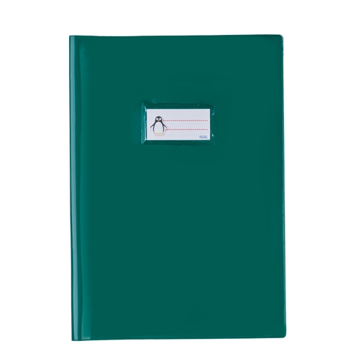 Coprimaxi C25E Francese realizzati in PVC con spessore 250 μm con alette ripiegate da 18 cm, portanome e listelli blocca quaderno centrali. Finitura coprente laccata lucida. 100% riciclabili. Adatti per quaderno A4 - formato 21x29,7 cm. Colore verde scuro.