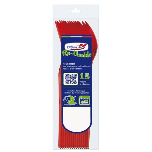 Cucchiai compact in polistirene. Colore: rosso. Lunghezza: 180mm. Confezione da 15 pezzi. Idonei al contatto con alimenti fino a max 90° C per 15 minuti. Non utilizzabili in forno. Prodotti riutilizzabili. Testato 20 lavaggi in lavastoviglie.