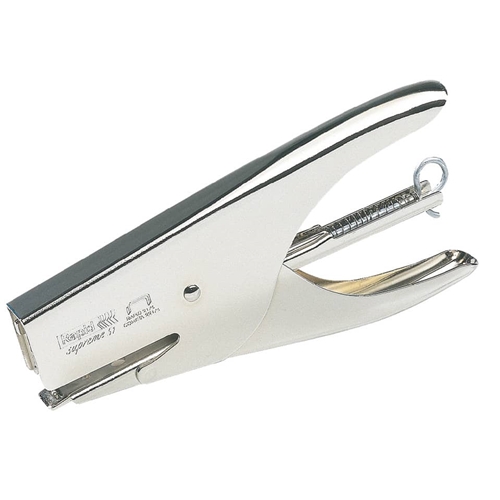 Pratica cucitrice a pinza in acciaio disponibile con placcatura al nichel e in colori assortiti. Ideale per la casa e l'ufficio. Capacità 12 fogli. Cucitrice a pinza ergonomica S51. Colore nichel.