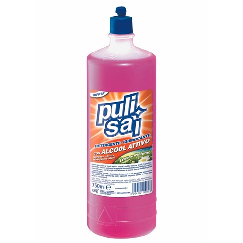 PULISAI detergente igienizzante per superfici dure, con alcool attivo. Ideale per pulire a fondo vetri, specchi, finestre, piastrelle, sanitari e tutte le superfici lavabili. Formato: 0,75L. Ideale per la pulizia di tutte le superfici della casa come piastrelle, sanitari, superfici laccate, vetri, specchi e tutte le superfici lavabili. Distribuire direttamente il prodotto sulle superfici da pulire e strofinare con panno asciutto o umido o con della carta, per rimuovere lo sporco. Composizione chimica (Reg. Ce 648/2004): Tra il 5 e il 15% alcol isopropilico. Inf 5% tensioattivi anionici e tensioattivi non ionici. Contiene inoltre: profumo. Avvertenze: Tenere fuori dalla portata dei bambini. Evitare il contatto con gli occhi. Azione igienizzante tramite rimozione meccanica di germi e batteri.