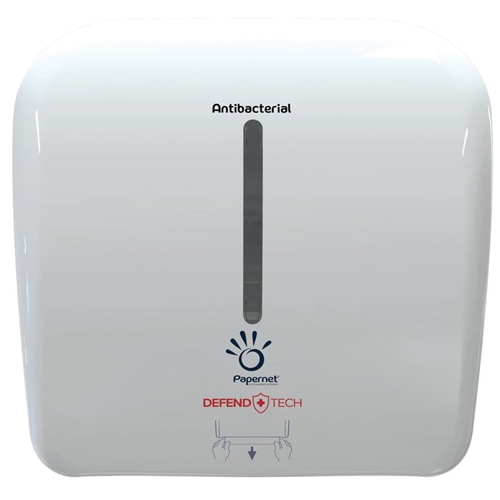 Dispenser autocut Papernet Universus manuale antibatterico con tecnologia Defend Tech. Un'ampia gamma di dispenser in plastica antibatterica e riciclata dove la semplicità e l'eleganza sono garantiti da un esclusivo design italiano che renderà l'ambiente ordinato e pulito. Colore bianco, dimensioni 33,3 x 32,1 x 22,6 cm. Capacità Max Ø 20 cm x h 22 cm.