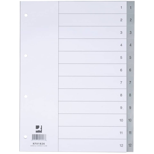 Divisore numerico Q-Connect - grigio - 22,5x29,7 cm - ppl - 1-12