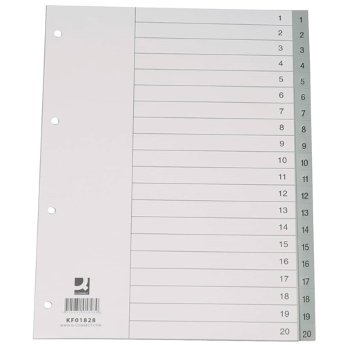 Divisore numerico Q-Connect - grigio - 22,5x29,7 cm - ppl - 1-20