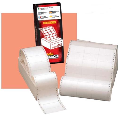 Etichette a modulo continuo Markin, autoadesive e per stampanti ad aghi.