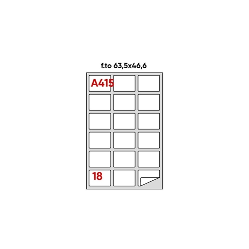 Etichette autoadesive Markin Copiatabu A4 bianche con angoli arrotondati. Adatte per stampanti Laser, Inkjet e fotocopiatrici. L'adesivo permanente universale è in acrilico a base acqua. Ottima resistenza al calore. Buona adesione su cartoni e superfici non-polar. Buona adesione anche alle basse temperature -20°/+100°C. Carta di pura cellulosa lisciata in macchina. Grammatura 70 g/m2 ISO 536. Punto di bianco 98% ISO 2470/1. Stampabilità: INKJET, LASER e fotocopie, flexo, offset, tipo e serigrafia. Confezione da 1800 etichette, formato 63,5x46,6 cm.