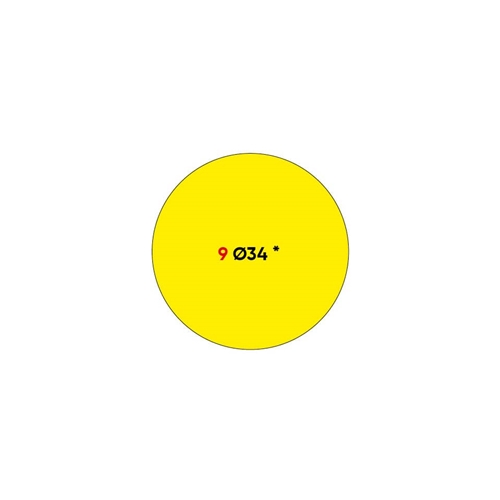 Etichette autoadesive Markin Copiatabu C598 con collante permanente su foglio A4. Adatte per stampanti Laser, Inkjet e fotocopiatrici. Confezione da 10 blister da 10 fogli, formato diametro 34 mm, giallo.