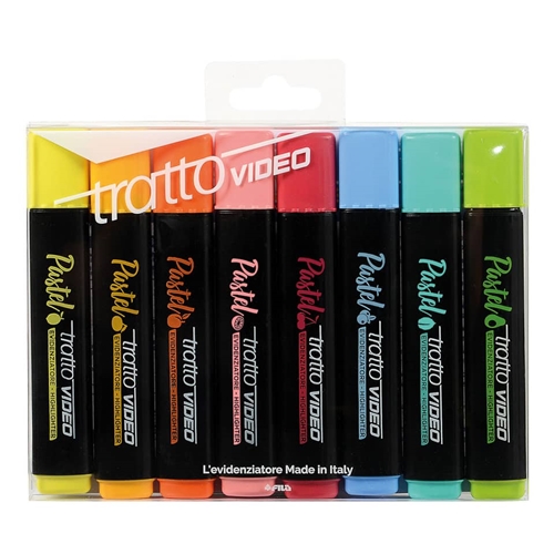 Evidenziatori Tratto Video Pastel 1-5 mm in busta appendibile da 8 colori pastello assortiti - F838000- conf. 8
