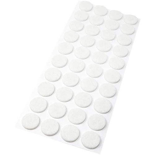 Feltrini piccoli di colore bianco, ottimi per la protezione di qualsiasi oggetto. Dimensioni: 20 mm. Confezione da 44 pezzi.