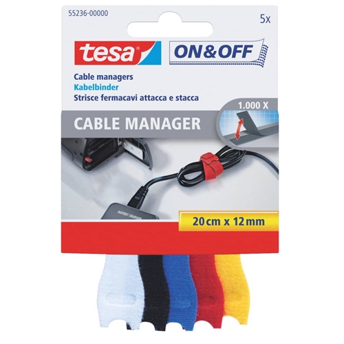 tesa® ON&OFF fermacavi small è ideale per ordinare e legare i cavi di dispositivi elettrici ed accessori.Regolabile in lunghezza è adatto a numerose applicazioni, riutilizzabile e può essere aperto/chiuso infinite volte.Infilando un capo nell'altro la fas