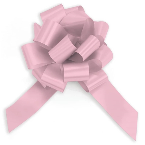 Fiocchi in nastro liscio colorato da 30 mm. Diametro fiocco 12 cm, colore rosa. Confezione composta da 30 pezzi.