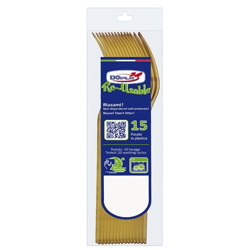 Forchette compact in polistirene Dopla Reusable oro - conf. 15