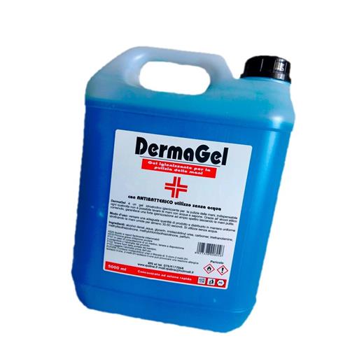 DermaGel è un gel idroalcolico igienizzante per la pulizia delle mani, indispensabile ogni qualvolta non sia possibile lavare le mani con acqua e sapone. Grazie all'alcool etilico contenuto, garantisce una forte igienizzazione ad ampio spettro lasciando le mani pulite. Formato 5000 ml.