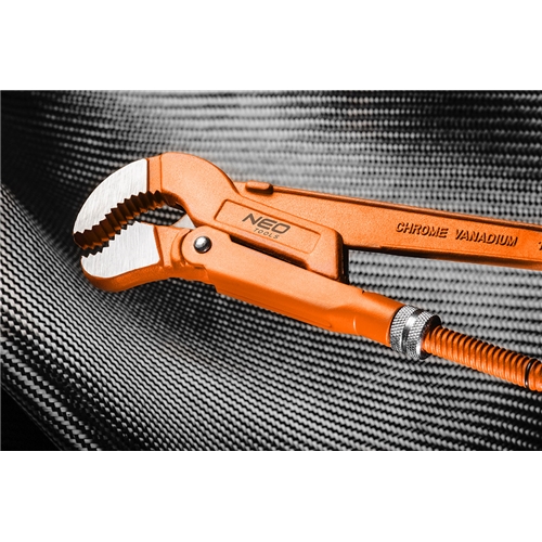 Chiave per tubi NEO tipo S (rif. 02-123) 535 mm di lunghezza, apertura ganasce 67 mm/2,0". Fabbricato secondo la norma DIN 5234, forgiato in acciaio al cromo vanadio di alta qualità, con ganasce rettificate e lucidate. Il manico rivestito antiscivolo sta bene in mano e facilita una presa salda. La qualità dell'utensile è confermata dal certificato TÜV e dalla garanzia del produttore di 25 anni. La marca NEO risponde alle aspettative dei professionisti.