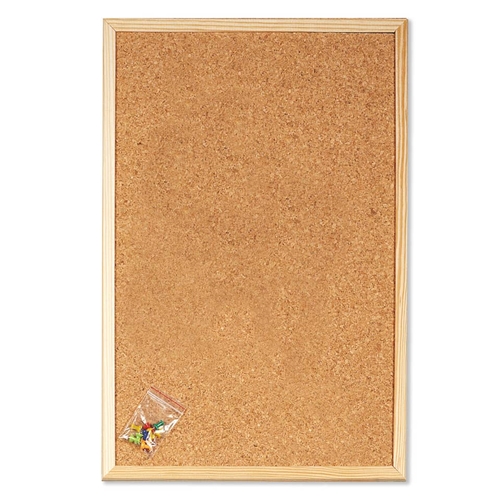 Lavagna in sughero con cornice in legno naturale. Completa di spilli. Formato 40x60 cm.